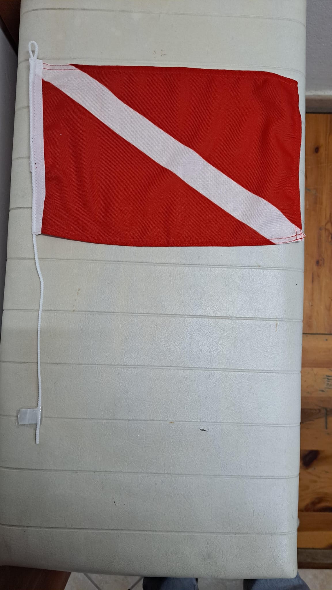 Bandiera segna sub, realizzata in tessuto per esterno in stamina di poliestere 100%.  con cordino di fissaggio. Stampata con tinte resistenti agli agenti atmosferici, ambienti marini e sole, indelebile.